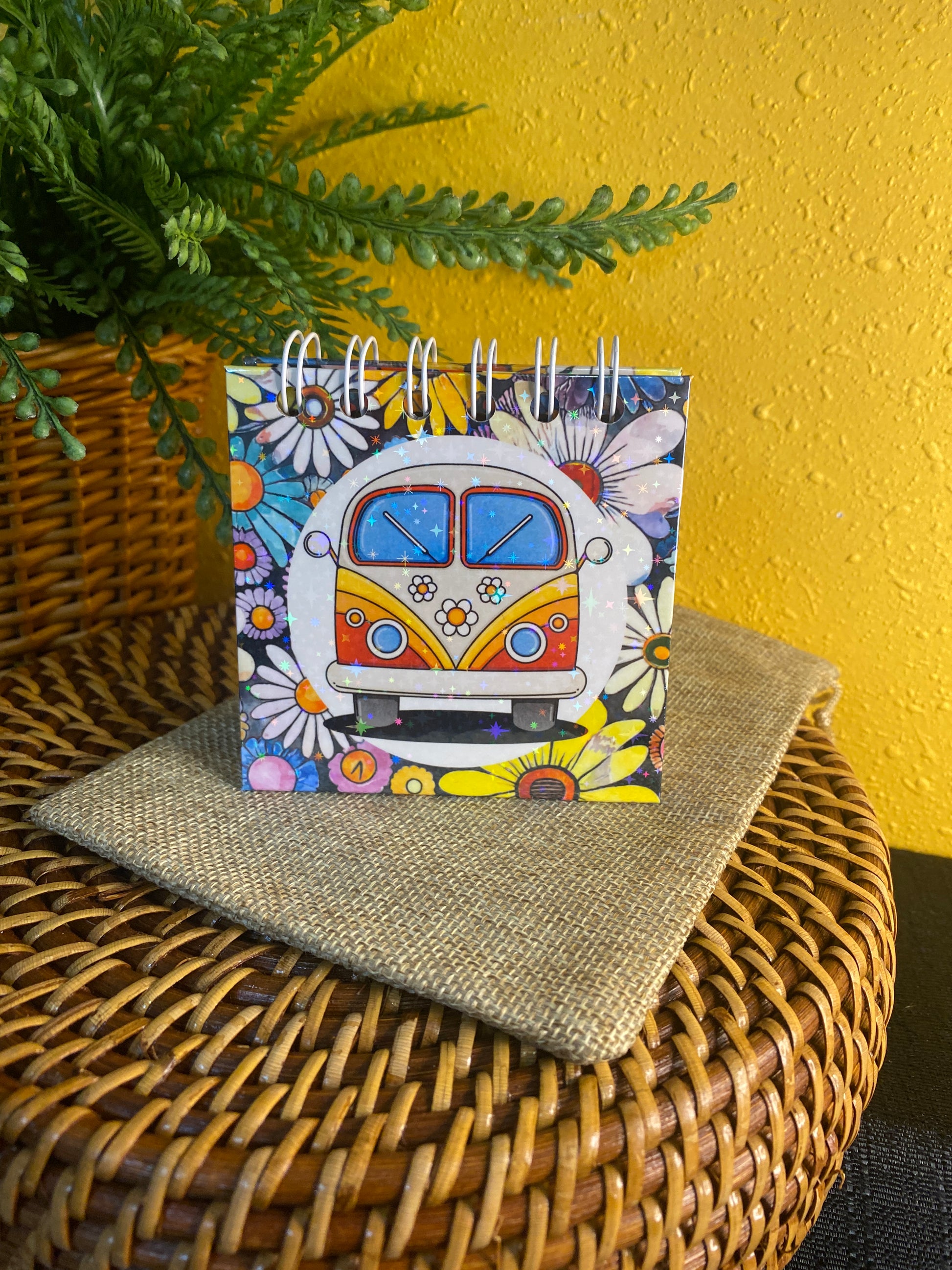 Handmade Mini Notebook, 3.5 Inch Metal Spiral Bound, 72 sheets - (144 pages) Lined paper. 120 GSM Paper Stock - Heavy 2mm Cover Stock. Includes a matching pencil and a coordinating 1-inch pin-back button. Everything is tucked inside a cute burlap bag—ready to gift!